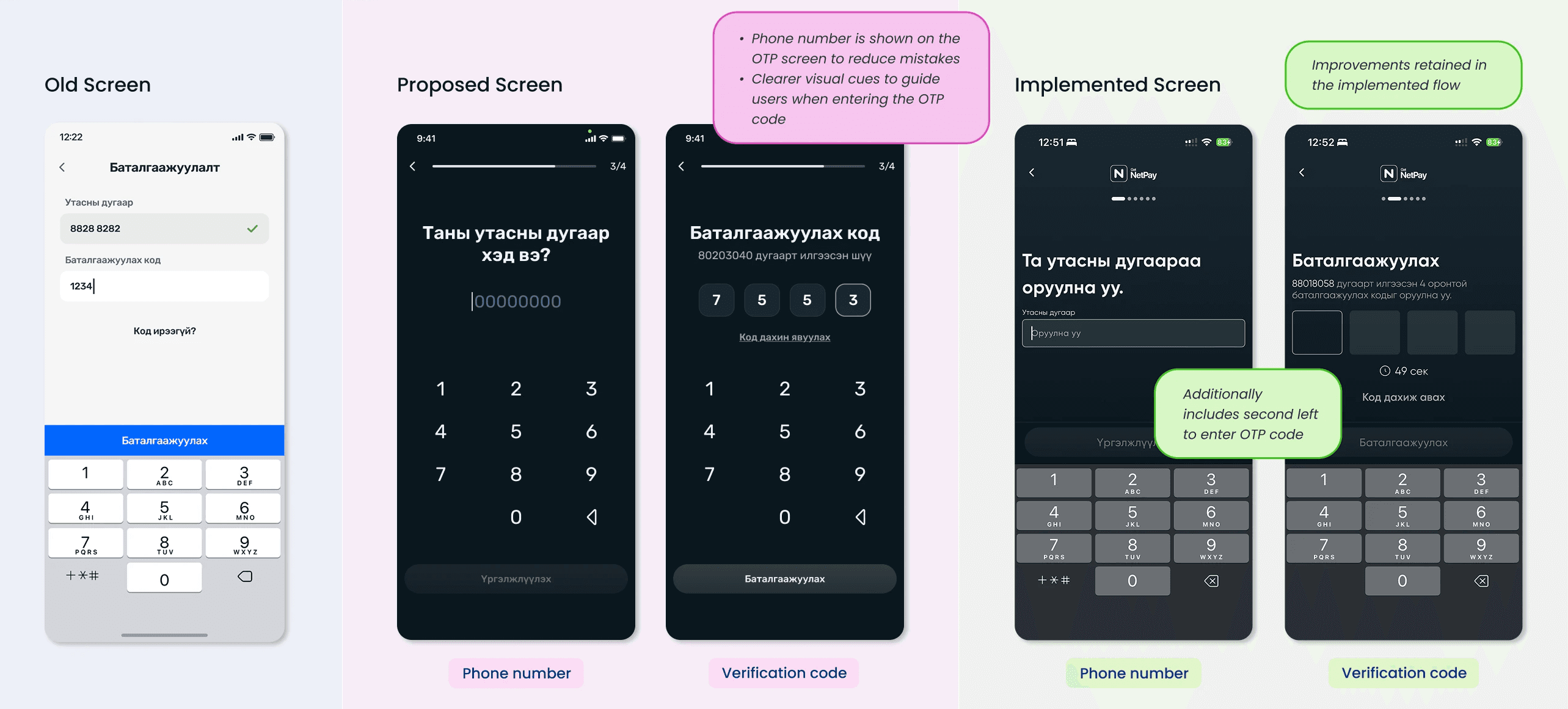 Some decisions (phone-number-first verification, PIN timing) were driven by existing infrastructure, teaching me to design solutions that improve clarity even when core logic cannot change.