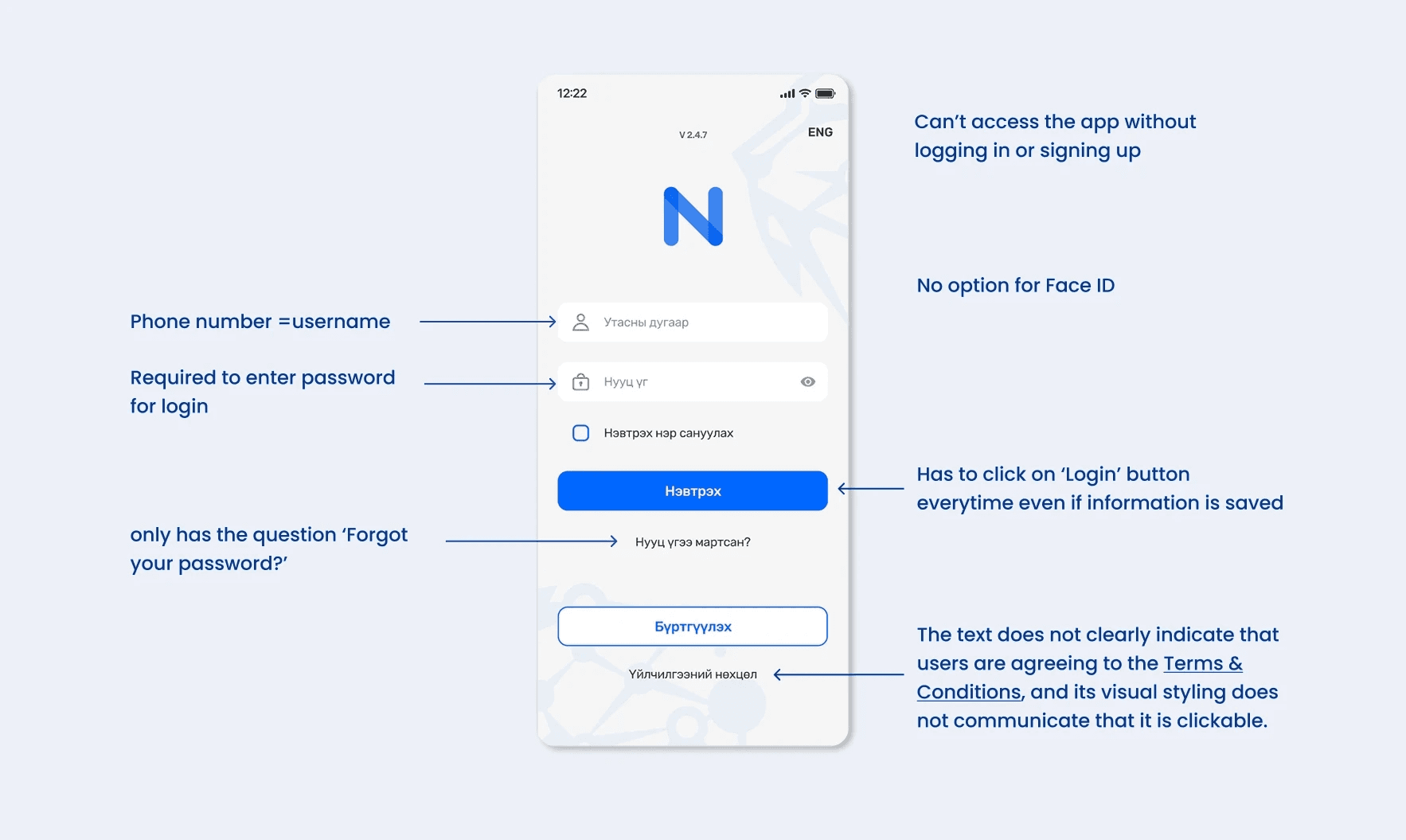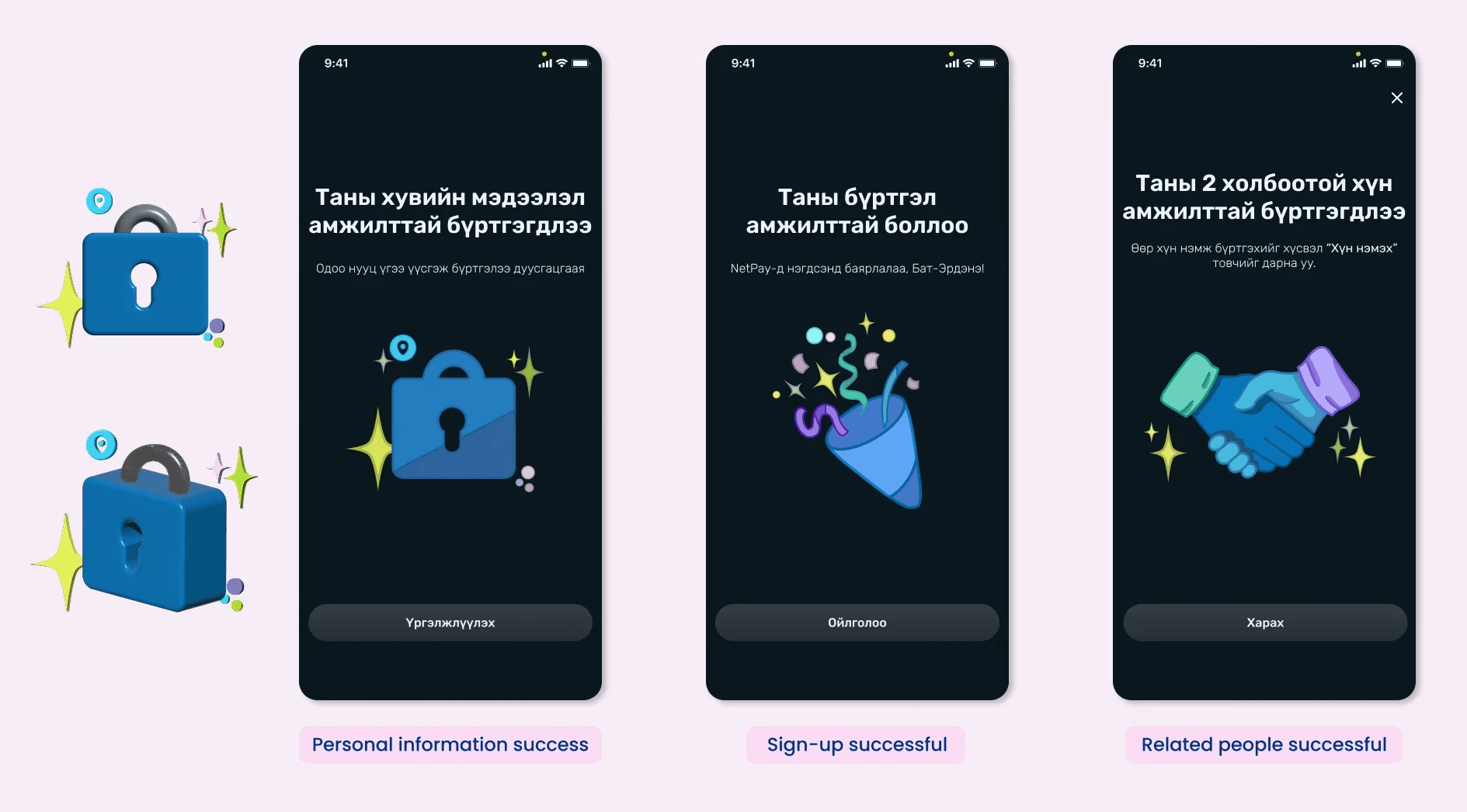 During my summer internship at NetCapital Financial Group, a leading non-banking financial institution in Mongolia and a Top 100 Enterprise in 2024, I was in charge of the redesign of the onboarding experience for their primary mobile app, NetPay. The app allows users to apply for, track, and repay online loans and was undergoing a complete visual and functional overhaul. I was given the responsibility of the onboarding flow holistically, which involved research and ideation, through wireframes and final UI, while closely working with the senior designer.
