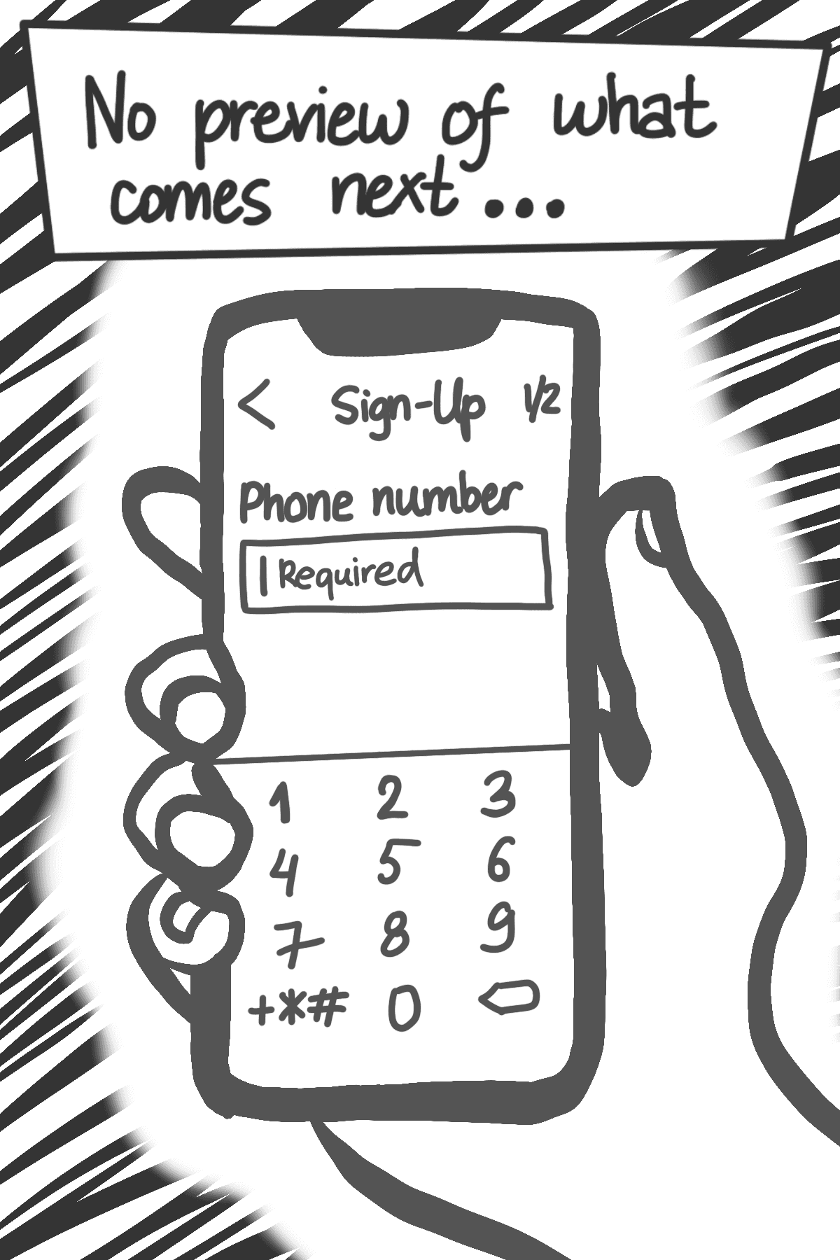 You’re ready to begin, but the first screen asks for your phone number without explaining what comes next, what information is needed, or why it’s required.