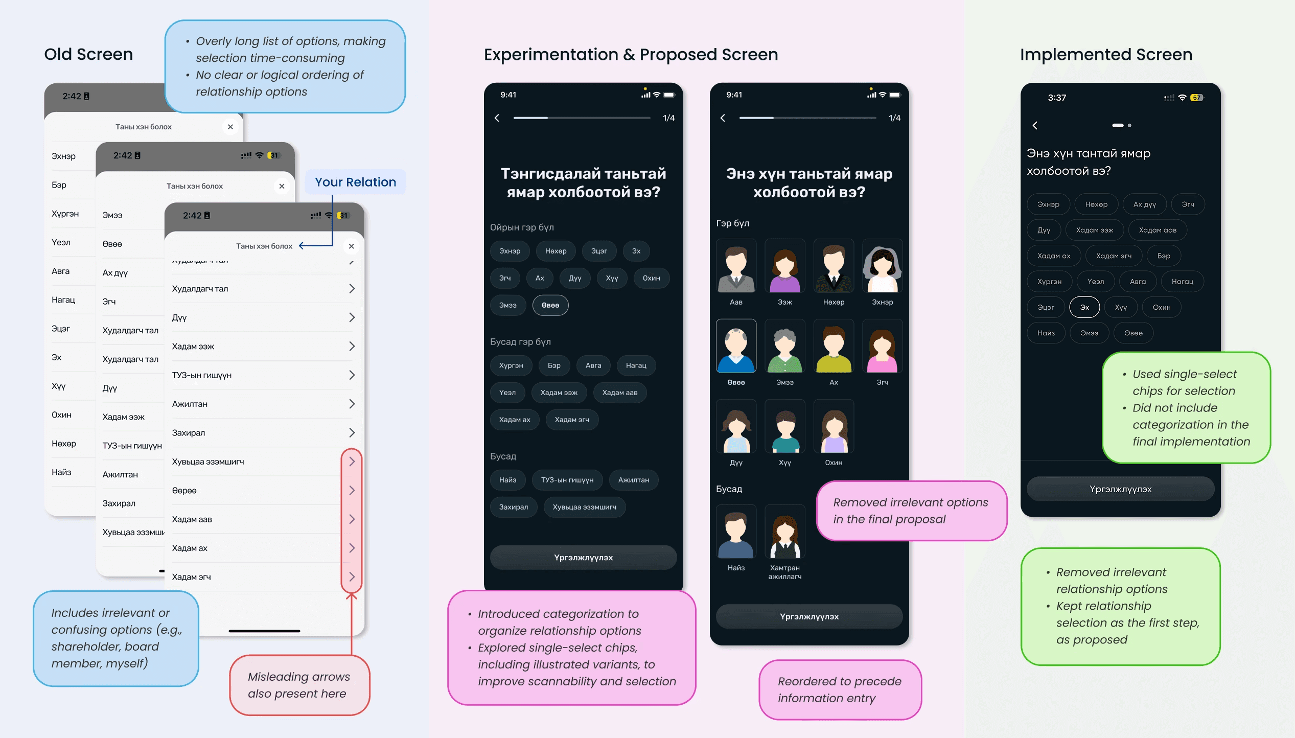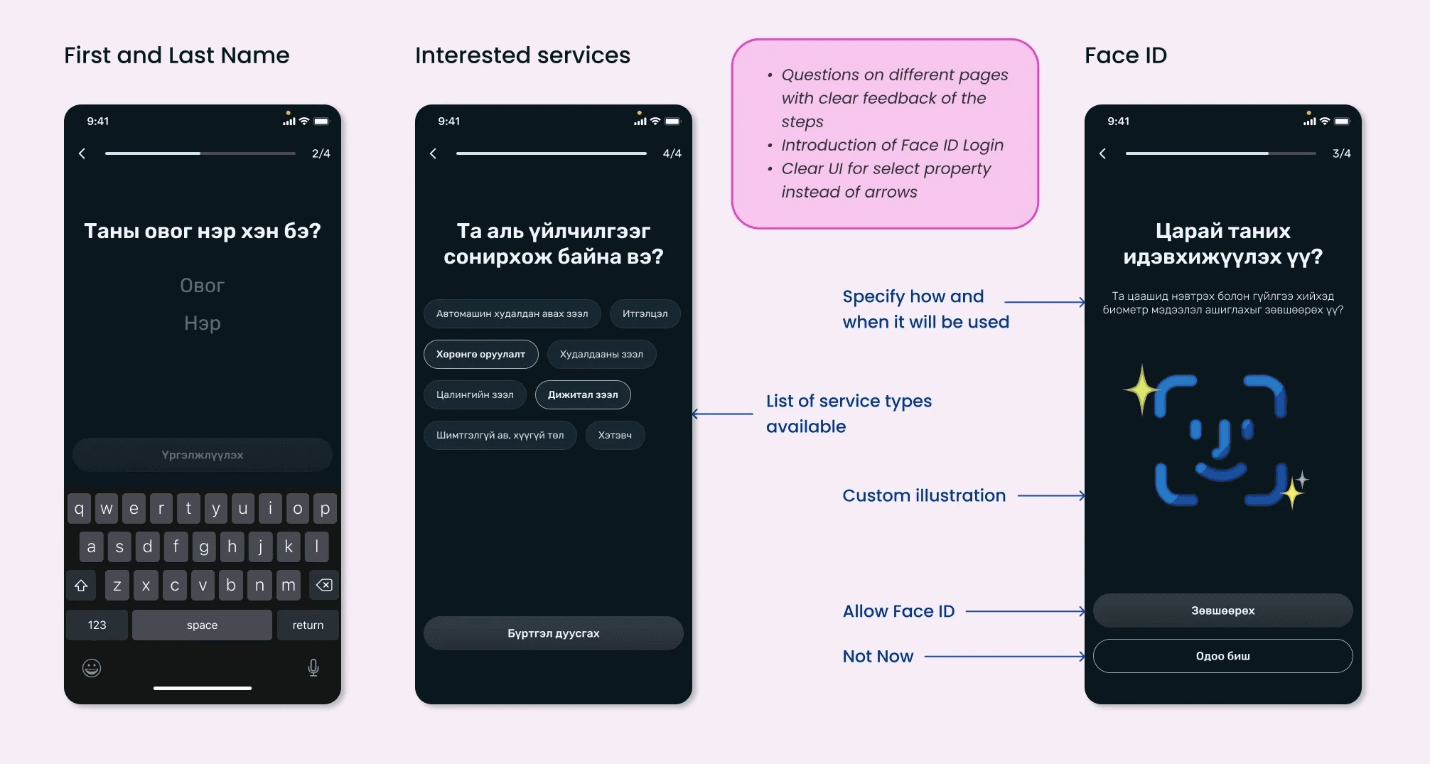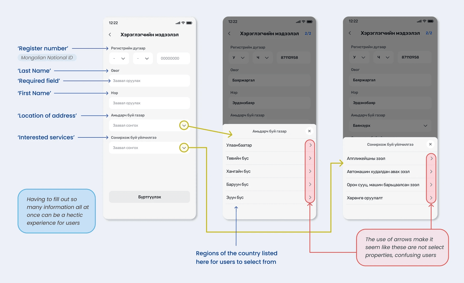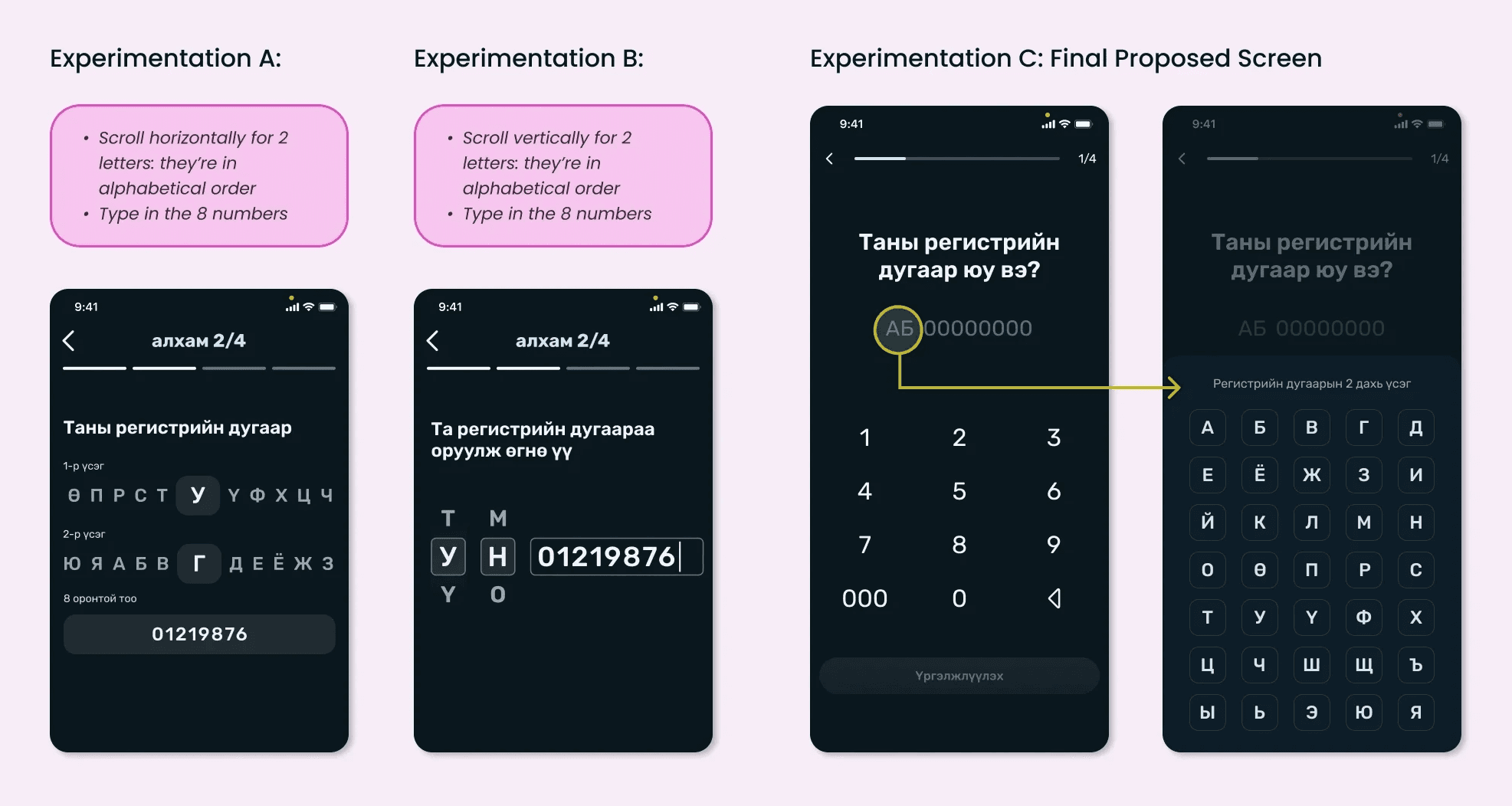 While working on this flow, I explored ways to make entering the Register Number, the Mongolian National ID, feel more intuitive.